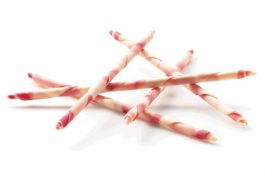 Die Schokorollen "Raphael" marmoriert aus weißer und rosa Schokolade, sind die perfekte Ergänzung auf Ihren Eis- und Dessertspezialitäten.